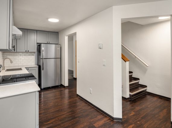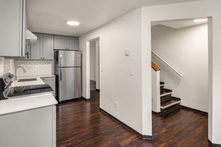 2 bedroom 1 bath townhouse style apartment for lease! 2 bedrooms and 1 bath upstairs. Main floor boasts a kitchen with room for dining table, laundry, and family room with decorative fireplace. Brand new kitchen with Stainless Steel appliances, quartz counters, large single basin sink, garbage disposal, range. Bathroom has heated tile floors! New paint and lighting throughout the apartment. In unit laundry with washer and dryer. 1 carport parking space with storage closet. Additional guest parking. Move in 4/10/26 Rent $1,600 Refundable Security Deposit of $1,800. Pets case by case with an additional refundable deposit. Landlord pays for landscaping and garbage. Tenant pays water/sewer/electricity. Professionally managed by NWTradition.com. All adults living in the unit over the age of 18 must apply. $30 application fee per adult.
